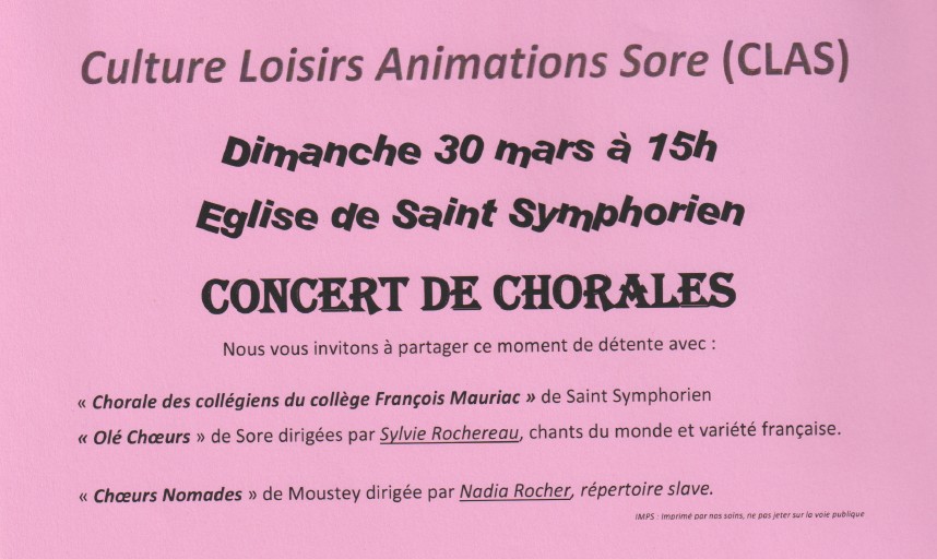 Concert de la chorale du collège à Saint-Symphorien le 30 mars à 15h !